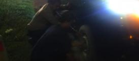 LampuHijau.co.id - Kapospam Simpang 4 Pusakanagara Kompol R Jusdijachlan evakuasi pemudik yang terjatuh dari sepeda motor di Jalan Raya Pantura Pusakanagara, Kabupaten Subang, pada Kamis (20/04/2023) sore.