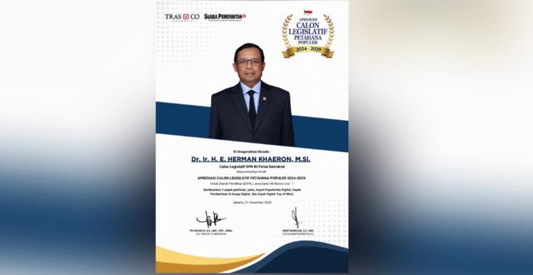 Hal tersebut terbukti, dengan diraihnya Apresiasi Calon Legislatif Populer 2024-2029 oleh Herman Khaeron dari media SuaraPemerintah.