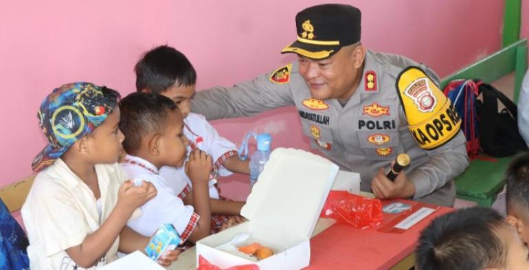 Polres Halmahera Timur mendukung penuh program Presiden RI Prabowo Subianto untuk turut serta melaksanakan pembagian makan siang bergizi gratis kepada Siswa Sekolah mulai dari TK hingga sekolah dasar. (MGN)