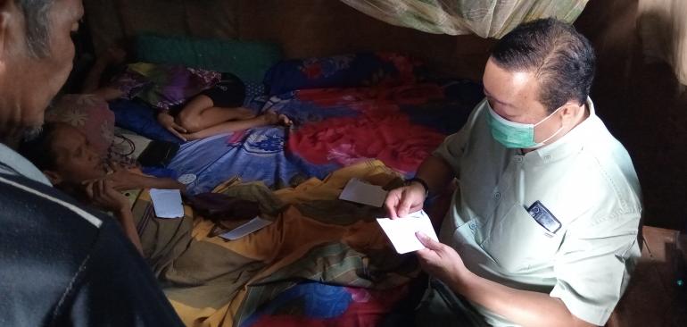 Ketua Ikatan Dokter Indonesia (IDI) Cabang Subang tersebut memberikan bantuan kepada perempuan berusia 45 tahun ini karena sakit saraf kejepit sehingga sulit berjalan. Hari-hari Yati hanya di atas kasur.