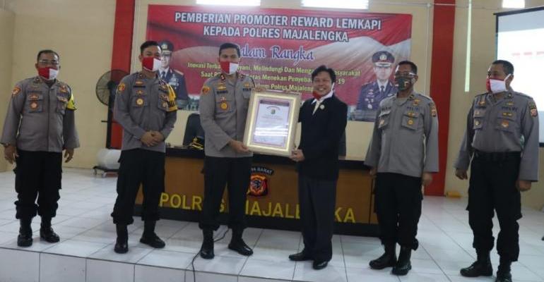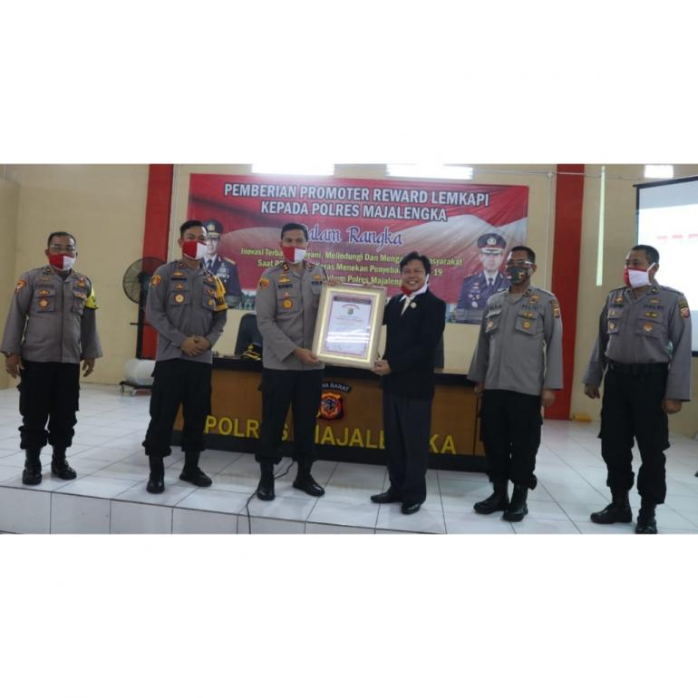 LampuHijau.co.id - Direktur Eksekutif Lembaga Kajian Strategis Kepolisian Indonesia (LEMKAPI) Edi Saputra Hasibuan memberi apresiasi dan penghargaan kepada Polres Majalengka, Selasa (16/6/2020). Pemberian penghargaan ini, karena banyak inovasi telah dilakukan dalam menghadapi pandemik Covid-19 dan inovasi lainnya yang strategis di wilayah hukum Polres Majalengka.