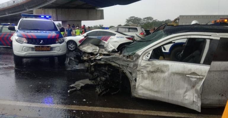 Adapun identitas kendaraan yang mengalami kecelakaan beruntun ini yakni Mitsubishu Outlander B 378 BEL dengan pengemudi berinisial SB, Suzuki Ertiga B-2029-BKW yang dikemudikan Lia Sagita, Toyota Innova B-1014-WOU dengan pengemudi Tuheri, serta Toyota Rush B-1546-WFX dengan pengemudi Hadi Dzikru Rohman.