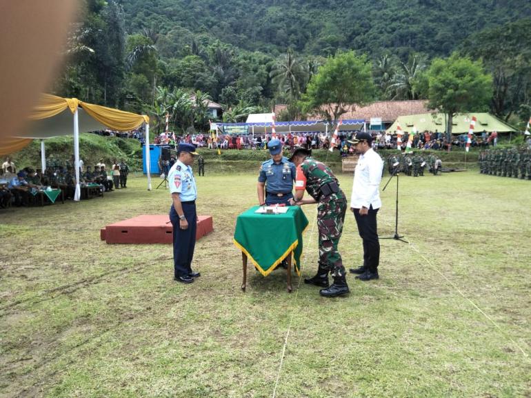 Upacara penutupan TMMD dengan inspektur upacara (Irup) Kasgartap II/Bandung Marsma TNI Embu Agapitus dengan membacakan amanat Kasad selaku Penanggungjawab Operasional TMMD Jendral Andika Perkasa. "Upacara penutupan ini sekaligus menandai berakhirnya Program TMMD ke-104 yang dilaksanakan serentak di 50 kabupaten/kota di seluruh Nusantara," katanya.
