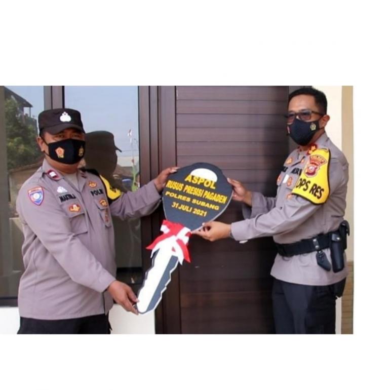 LampuHijau.co.id - Kapolres Subang AKBP Aries Kurniawan Widiyanto, SH meresmikan 12 unit rumah khusus (rusus) personel Polri di Mapolsek Pagaden, Kabupaten Subang, Sabtu (31/07/2021). Kapolres bersyukur rusus ini sudah selesai dibangun dan pembangunan waktunya sesuai dengan kontrak.