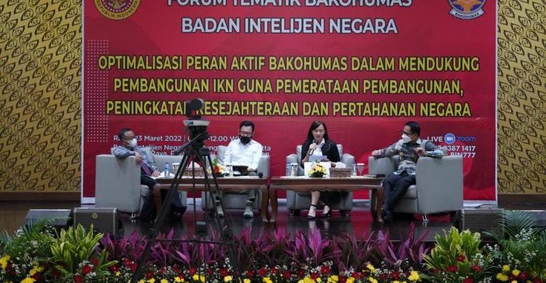 Acara bertema “Optimalisasi Peran Aktif Bakohumas dalam Mendukung Pembangunan IKN Guna Pemerataan Pembangunan, Kesejahteraan dan Pertahanan Negara” ini menghadirkan sejumlah narasumber. Di antaranya, Deputi Komunikasi dan Informasi BIN Dr. Wawan H. Purwanto, Dosen Prodi Keamanan Nasional Universitas Pertahanan (Unhan) Dr. Anang Puji Utama, dan Director Executive Center of Reform on Economics Mohammad Faisal.