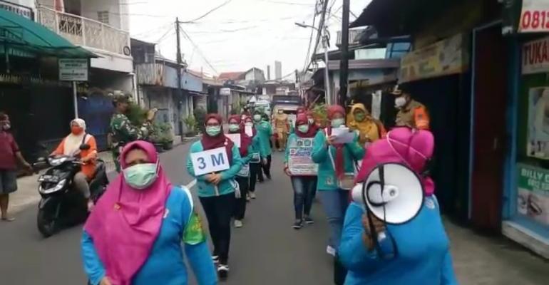 “Karang taruna, ibu-ibu PKK, Jumantik dan Dasawisma RW 14 Kelurahan Pisangan timur aktif berkeliling dilingkungan RT. 09, 10 dan 11 dengan menggunakan Toa pengeras suara untuk memberikan sosialisasi, edukasi kepada warga masyarakat didampingi Sertu Abdul Haris.