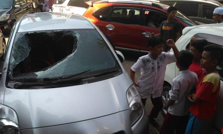 Jatuhnya MZ diketahui P, penjual minuman di lokasi. P kaget ada suara keras disertai pecahan kaca. Ketika melihat sekitar terdapat mobil yang kaca depannya pecah dan terdapat MZ di dalamnya, serta tidak bisa bergerak.