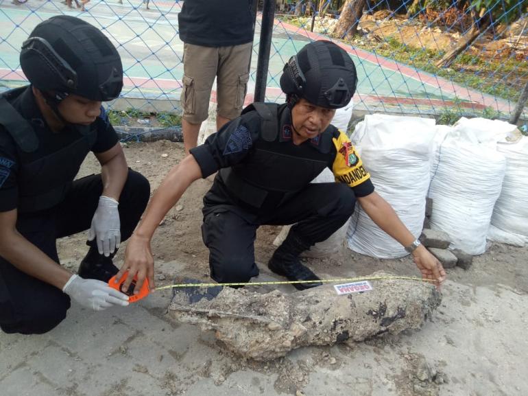 "Berat mortir diperkirakan mencapai 800 kilogram dan masih aktif. Kemungkinan saat dijatuhkan dari pesawat itu tidak meledak, hanya terkena pasir dan jatuhnya tidak tepat. Butuh setidaknya 10 orang mengangkut mortir tersebut," katanya.
