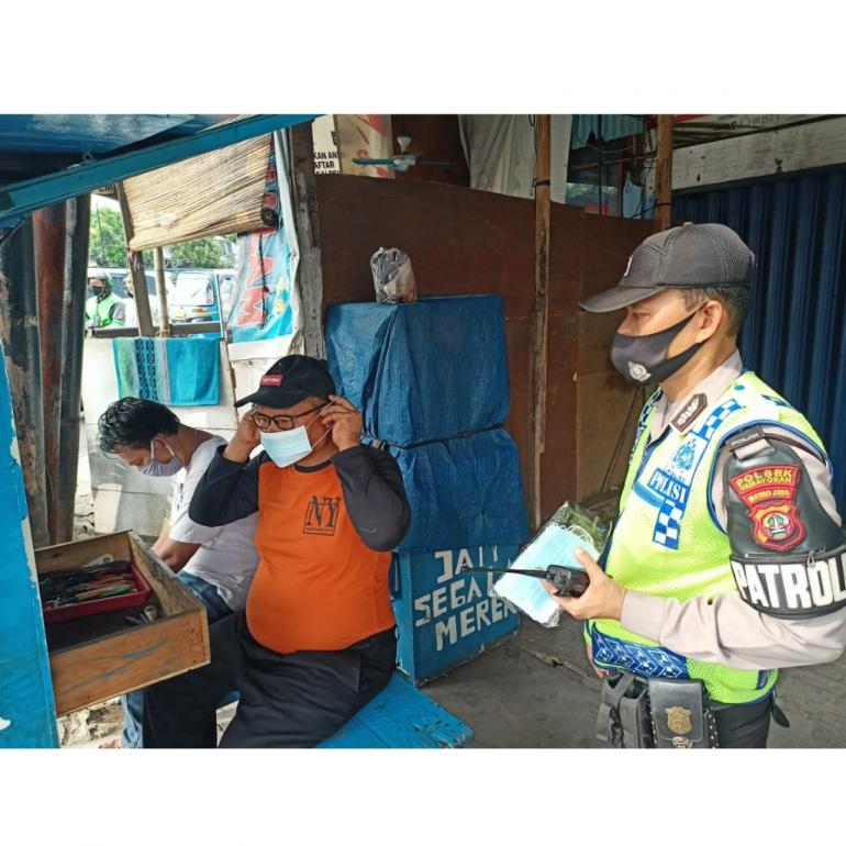 "Pembagian 200 masker ditujukan kepada pengguna jalan yang melintas di lokasi. Bagi warga yang tidak menggunakan masker ada sanksi disiplin oleh Satpol PP. Sebanyak 25 petugas gabungan dikerahkan," paparnya.
