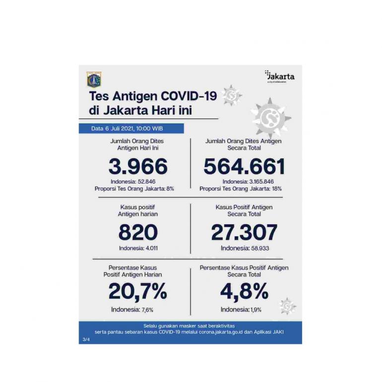 Perlu diketahui, hasil tes antigen positif di Jakarta tidak masuk dalam total kasus positif karena semua dikonfirmasi ulang dengan PCR. (ULI)