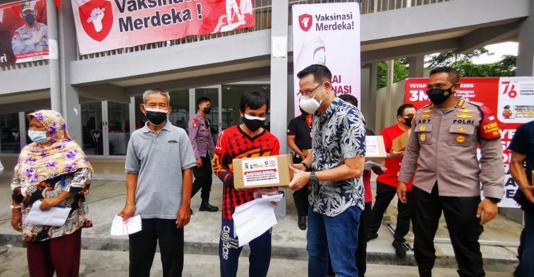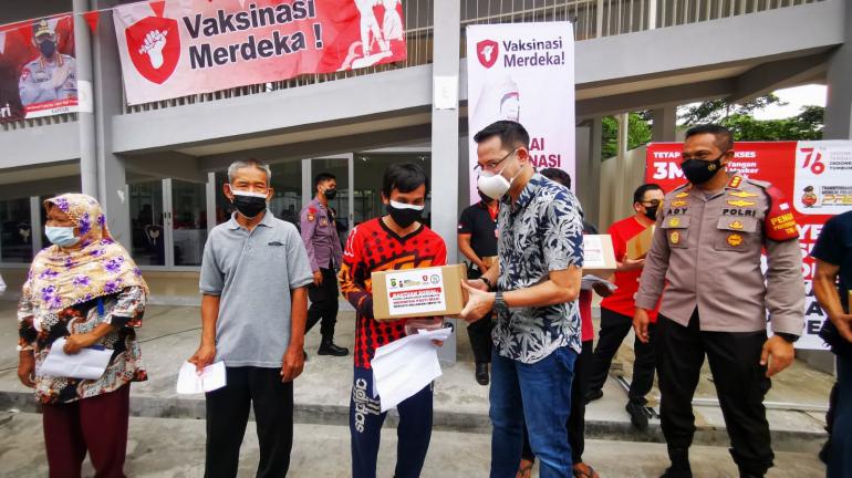 Warga yang telah mendapat vaksinasi juga turut diberi paket sembako yang disiapkan oleh Polres Metro Jakarta Barat. Sementara itu, untuk data sementara jumlah serapan vaksin merdeka mulai dari 1 Agustus 2021 hingga kini mencapai 360 ribu dosis.(FrK)
