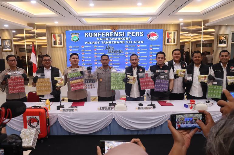 Kapolres Tangsel, AKBP Boy Jumalolo, Rabu, 25 Februari 2026, mengungkapkan dalam kasus ini kepolisian menyita barang bukti 207 cartridge merk 'want sex' berbagai warna yang didalamnya masing-masing berisikan cairan etomidate.
