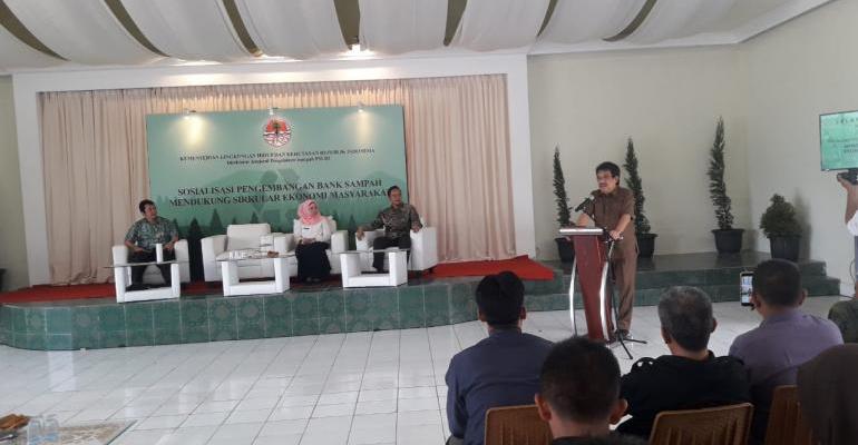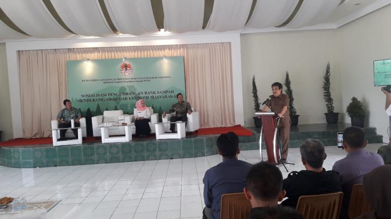 Arif Sumargi, selaku perwakilan dari Kementerian LHK dalam kesempatan itu memberikan pemaparan atau sosialisasi pengembangan bank sampah untuk mendukung sirkulasi ekonomi masyarakat.